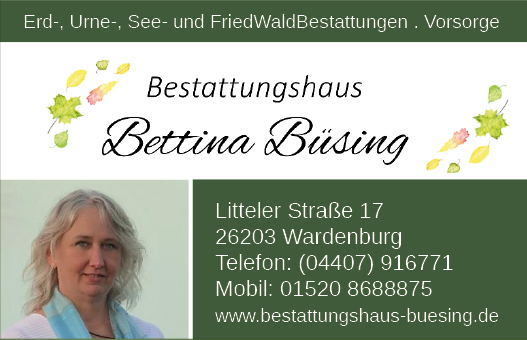 - Bestattungshaus Bettina Büsing Wardenburg - hier zur Unternehmenspräsentation - hier zur Digitalanzeige